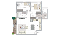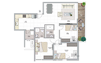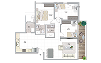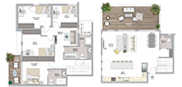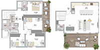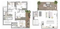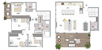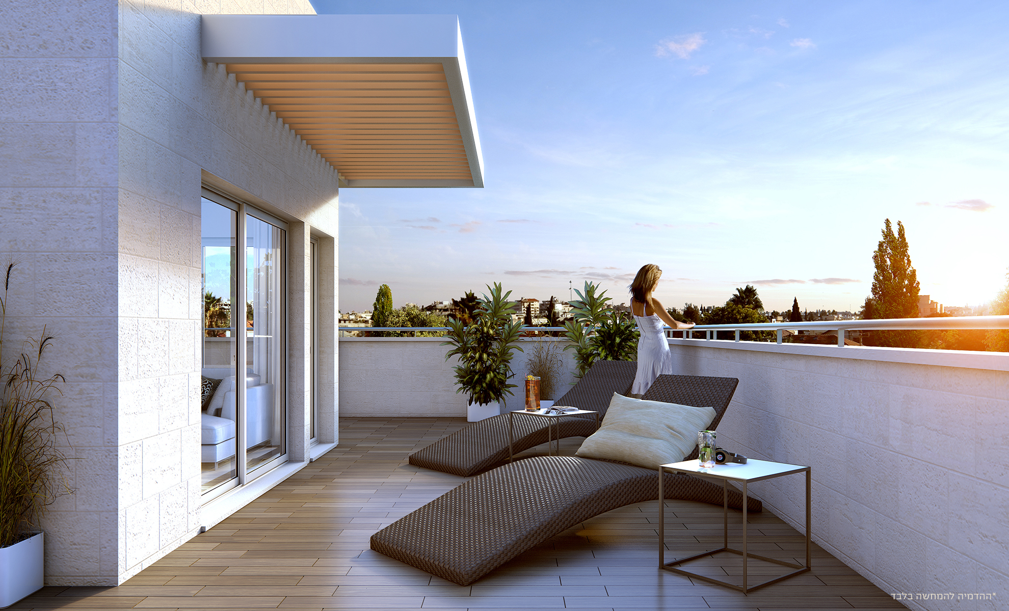 בקומות העליונות של הבנין נמצאות דירות הדופלקס המתוכננות בעיצוב מודרני וחדשני, כך שהמעלית מגיעה לקומה העליונה בה ממוקמים חדר המגורים, המטבח ומרפסת הגג. מהמפלס העליון יורדים למפלס המגורים הזוכה לפרטיות, בו ממוקמים ארבעה חדרי שינה ופינת משפחה.